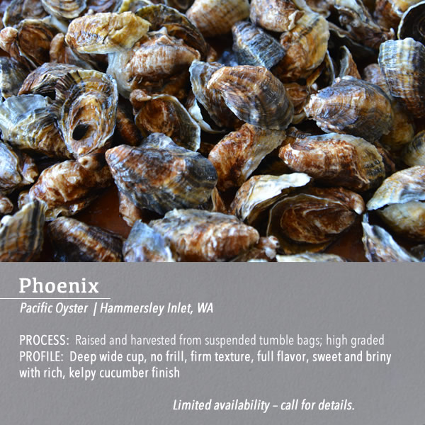 Family owned & operated South Sound Mariculture prides itself on producing premier Northwest oysters including the Sea Nymph and the premier select, Phoenix.